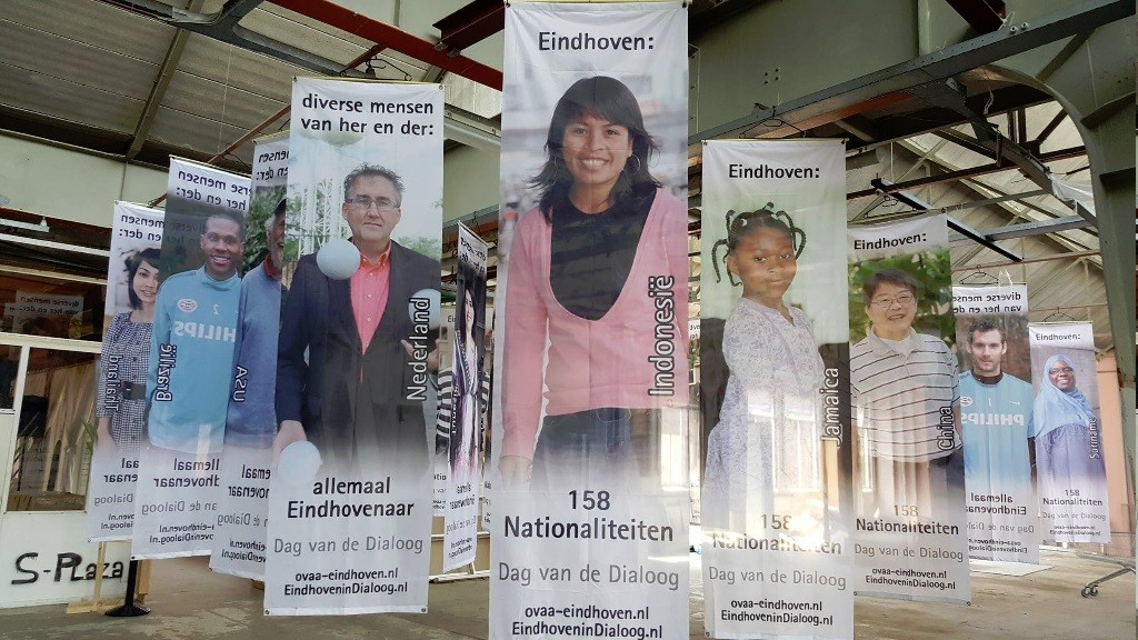 Ruim een week sierden de 153 kleurrijke banieren de stad. Doelstelling van het OVAA-project ‘Dialoog en diversiteit in Eindhoven’ was om diversiteit en etniciteiten in Eindhoven in beeld te brengen, zichtbaar en bespreekbaar te maken. En dat is toen zeker gelukt.